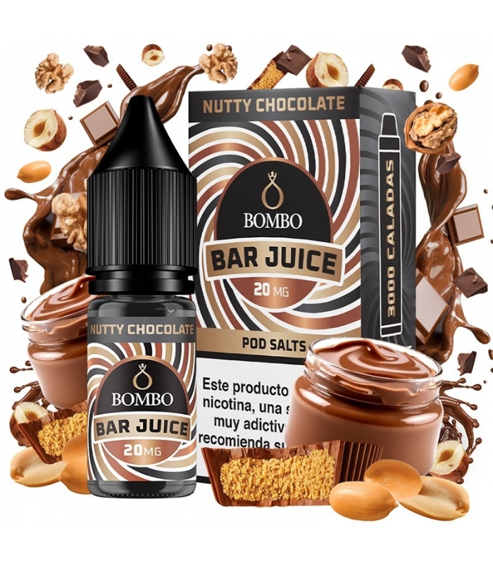 El líquido Nutty Chocolate de Bar Juice by Bombo recrea el auténtico sabor a la clásica crema de chocolate con frutos secos. Un eliquid de sabor intenso.