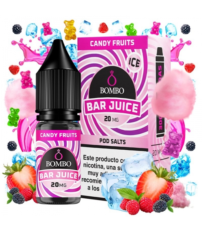 El líquido Candy Fruits Ice de Bar Juice by Bombo es una explosión de dulzura irresistible con sabor a golosina mezclada con frutos rojos. Todo ello coronado con un toque refrescante