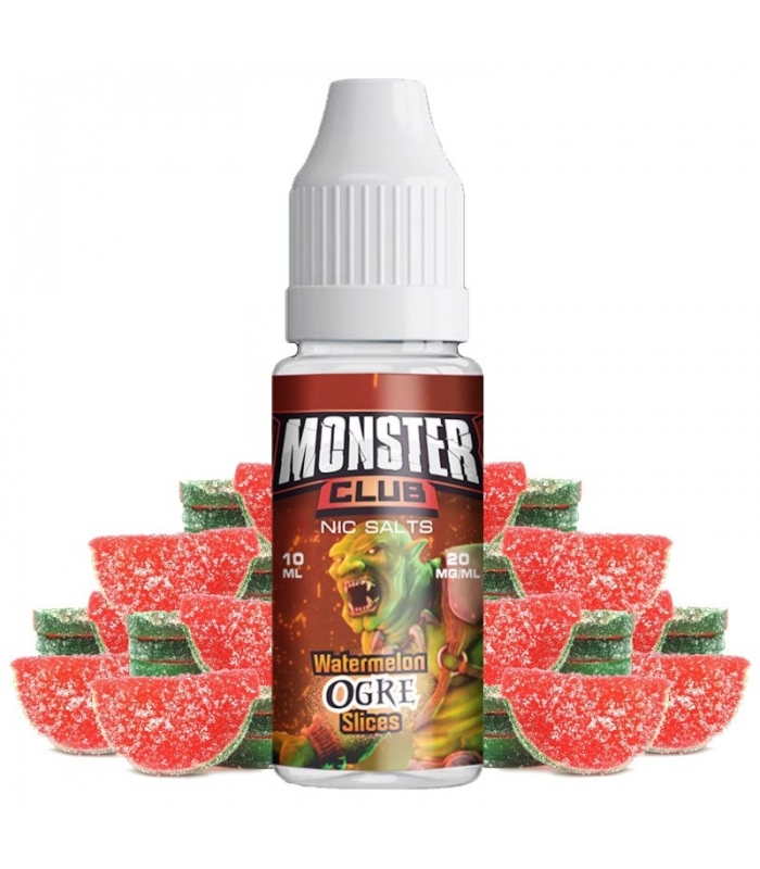 El líquido Watermelon Ogre Slices de Monster Club Nic Salts es una auténtica explosión de sabor que recrea deliciosas gominolas de sandía. Este elixir se inspira en la historia de Ogre, cuya apariencia inhumana contrasta con la dulzura de este eliquid irresistible.