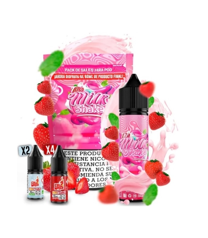 El Pack de Sales The Milk Shake + NikoVaps de Oil4Vap recrea el sabor del más delicioso y cremoso de los batidos de fresa. ¡No deja indiferente! El resultado final será un líquido de 56ml a 50/50 y con el nivel de nicotina deseado. (Si deseas el resultado con 14,66 mg/ml, añade los 4 Niko-vaps de sales. Si lo deseas a 9,99mg/ml añade 2 Niko-vap de sales y 2 Niko-Vap sin nicotina)
