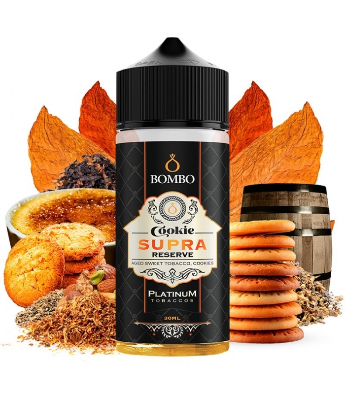 El aroma Cookie Supra Reserve en formato Longfill de Platinum Tobaccos by Bombo es una variación de Supra (Mejor Tabaquil en Dubai 2023 y Vapexpo 2022), famoso por su exquisito sabor a tabaco dulce con matices acaramelados y tostados; ahora combinado con tiernas galletas artesanas.