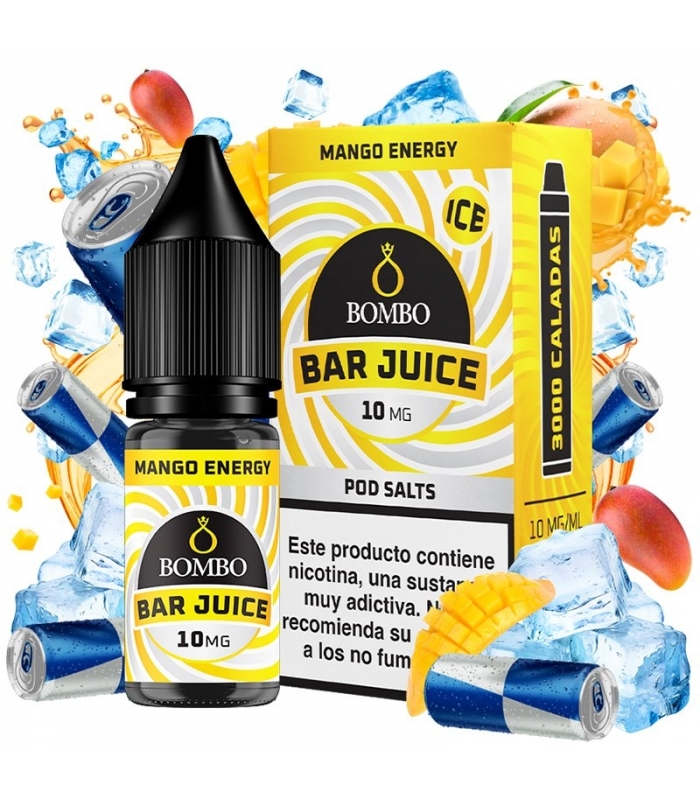 El líquido Mango Energy Ice de Bar Juice Nic Salts by Bombo conquista por su intenso sabor a mango combinado con la bebida enegética por excelencia, y un toque de refrescante hielo.