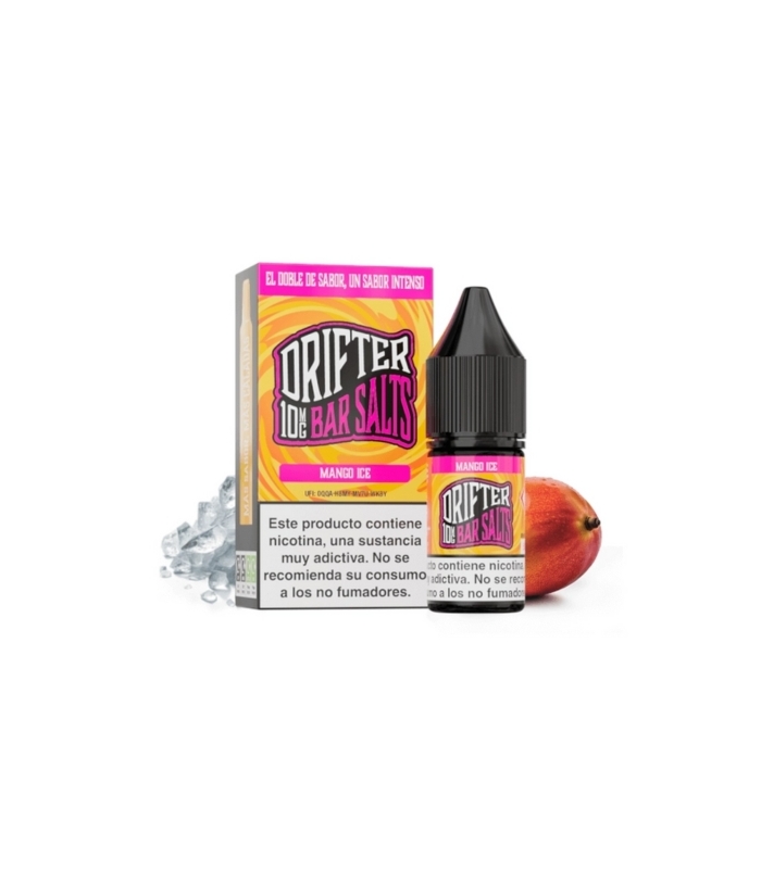Drifter Bar Salts Mango Ice 10ml. Combina el sabor de mangos maduros con un acabado helado, creando un vapeo delicioso y refrescante. Ofrece una experiencia de vapeo dulce y tropical.