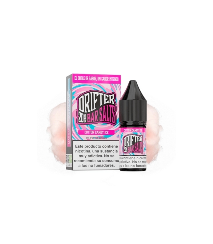 Drifter Bar Salts Cotton Candy Ice 100ml. Combina el sabor del algodón de azúcar con un acabado helado, creando un vapeo único y refrescante. Les encantará a los usuarios que busquen una experiencia de vapeo dulce y helado.